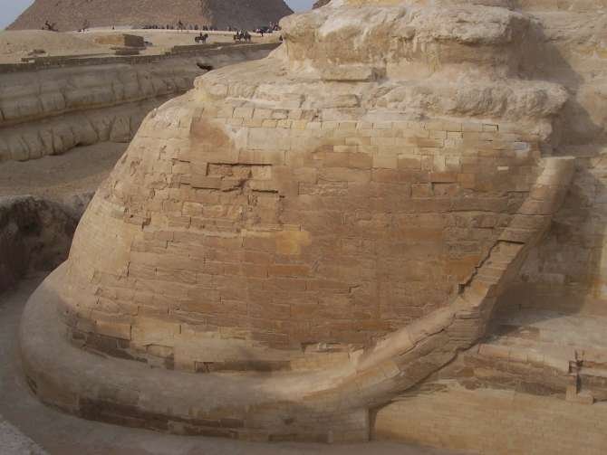 La Esfinge fue la primera pieza realmente colosal de escultura del antiguo Egipto. Los egipcios no volverían a tallar estatuas de estas proporciones hasta los reinados de los faraones del Imperio Nuevo, algunas unos 1.200 años más tarde. Se talló en el lecho natural de roca en la propia base de la calzada de Quefrén en forma de cabeza humana real en un cuerpo de león, simbolizando el poder y la fuerza controlados por la inteligencia del faraón.